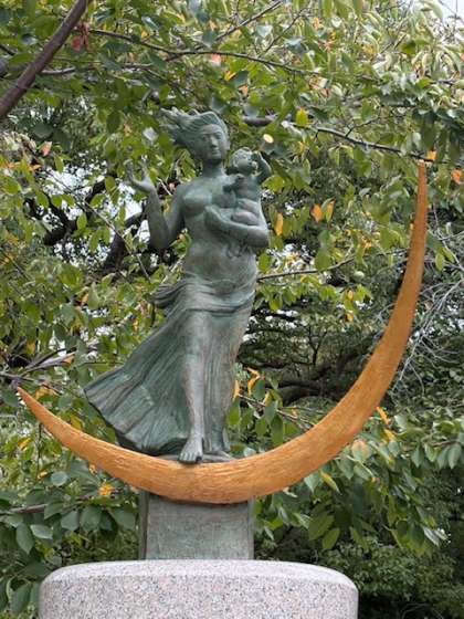 活動班ごとに公園を散策した後、平和記念資料館を見学しています。