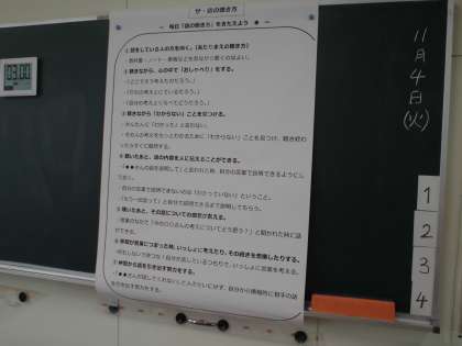 自分でただ解くだけではなくて、どう解いたかを説明して回っています。説明を聞く人も「話の聴き方」を確認して聞いています。きちんと聴き手にわかるように説明できてはじめて「わかった」ですね。うまく説明できたかな?
