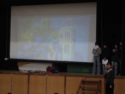 6年生の代表者が、平和について学んだことを発表しました。