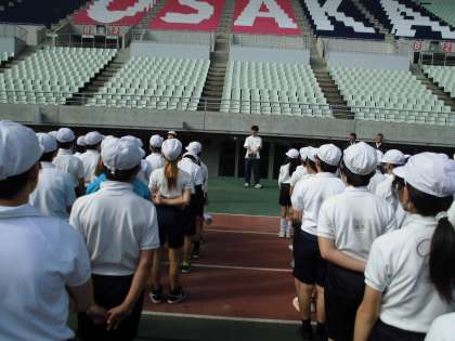 世界陸上の会場ともなっている本格的な競技場の大きさにびっくり、フィールドに出た時も感動でした。