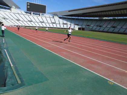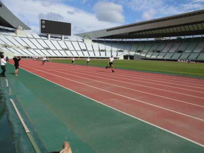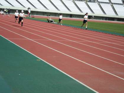 100m走の様子です。直線での100mは、なかなか走れないです。学校で記録を取っている50m走の2倍ですね。記念に記録も取りました。何秒で走ることができたでしょうか?