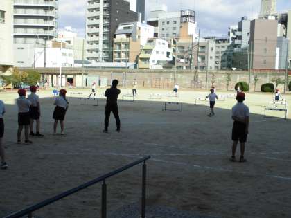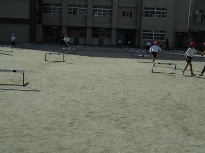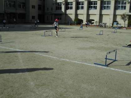 4年生が体育の学習でハードル走に取り組んでいます。