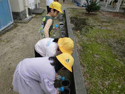 1年生は春から育てていたアサガオの種とりが終わり、先日チューリップの球根を植えました。これから、頑張って水やりをして大切に育てます。