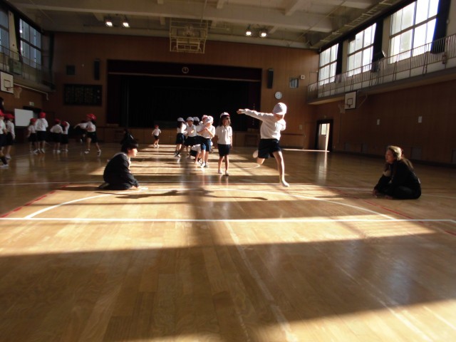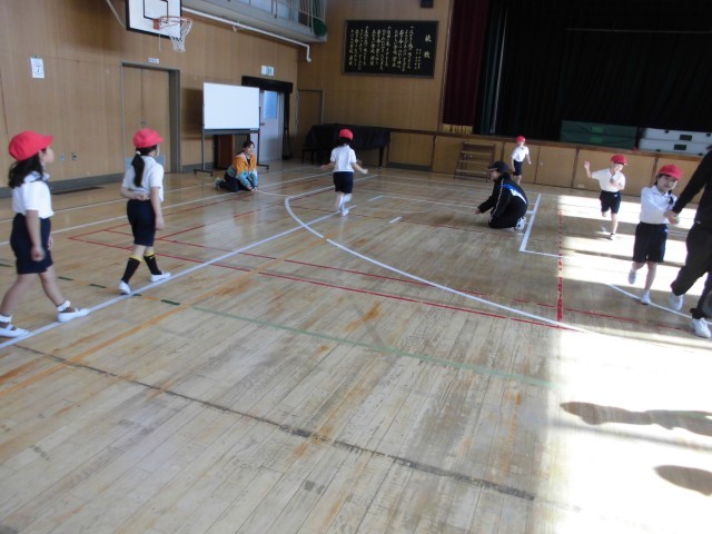 体育館も屋外と変わらず寒いですが、1年生が元気に運動しています。