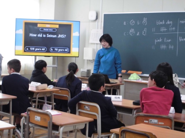 最初に千本小学校の6年生と一緒に多目的室で説明を聞きました。成南中学校の校長先生からは、「中学校の授業を体験して、中学への進学を楽しみにしてください。」とお話しがありました。
