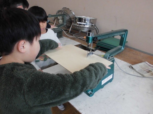 【学習の様子】5年 図画工作「糸のこぎりを使って」