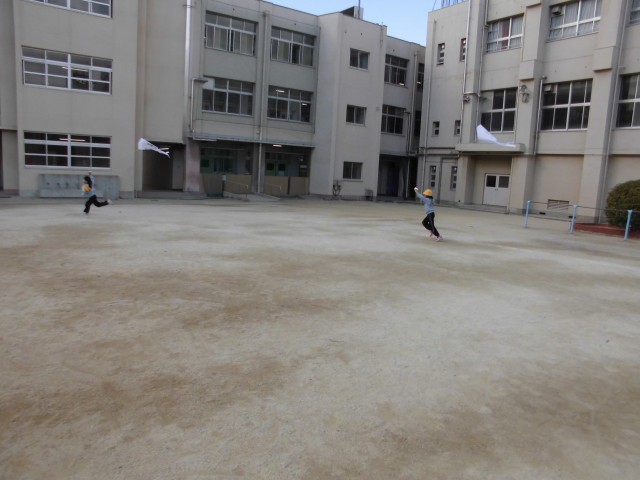 【学習の様子】1年 せいかつ「たこあげをしよう」