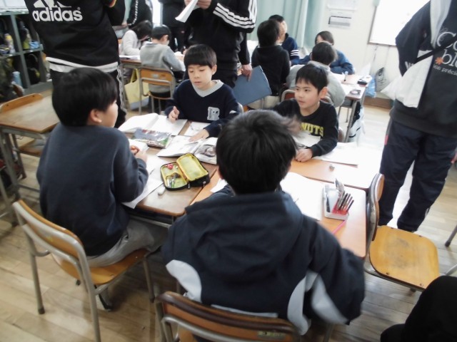 子どもたちは、しっかりと自分の考えをもって、ペアやグループで話し合い、考えを深めていました。