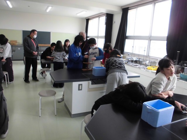 5年生が新しくなった理科室で実験をしています。