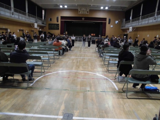 写真は、5-1と5-2と6年生です。