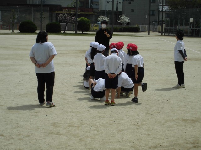 普段は2列に並ぶことが多いですが、今日は「4列」になる練習をしました。難しい動きですが、がんばって取り組みました。遠足でも安全に並び替えられるように、がんばってマスターしましょうね。