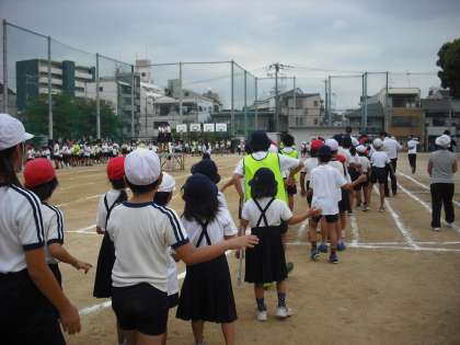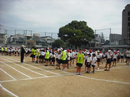運動会が近づいてきました。児童集会では、「こつまおどり」を練習しました。玉出の伝統芸能「こつまおどり」。これは当日、地域のみなさんや保護者のみなさんと一緒に大きな円をつくって踊り、楽しみます。児童会の子ども達の説明を聞き、見本をみながら練習しました。縦割り班のリーダーの6年生もばっちりです。