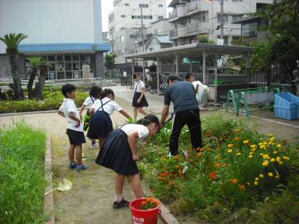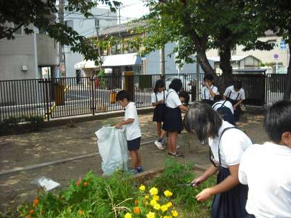 学校の花屋さんが始まりました。今日は、学習園の草引きです。昼休みのチャイムとともに学習園に走ってきました。一生懸命、協力しながら、そして楽しく草引きをしました。さあ、どんな花を植えようか?楽しみです。
