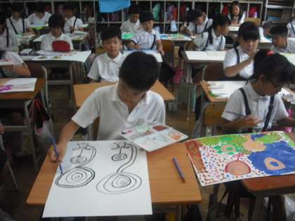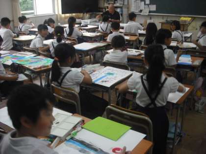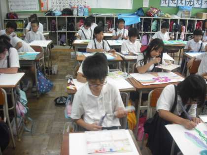 下書きなしでいきなり絵の具で自分のイメージを画用紙に表現します。