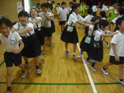 1回戦は先頭が1年生です。先頭同士がジャンケンをして、負けた班は勝った班の後ろにつながります。
