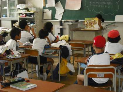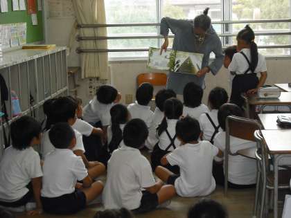 毎週水曜日の朝は読書タイムです。チャイムが鳴ると子どもたちは本を開いて読み始めます。図書委員会の児童が紙芝居を読んでいます。そして、学習サポーターが今日は2年生に来てくださり、読み聞かせをしていただきました。学校が静まり、心が落ち着く一瞬です。
