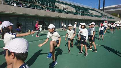 大阪市の8校の6年生が長居スタジアムに集まり、スポーツ交流を楽しみます。