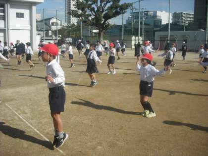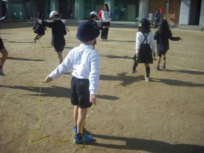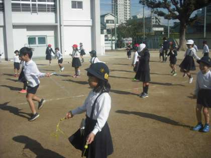 1〜3年生が運動場に飛び出し、短縄の技にチャレンジしました。
