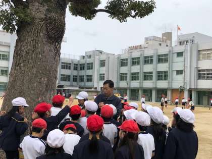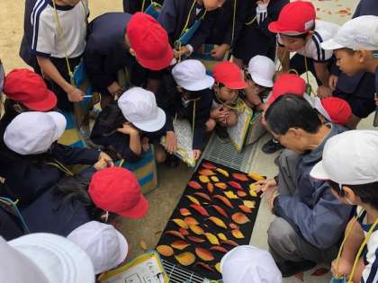 校庭と公園の散歩をして、身近な自然とのふれあいを楽しんだ2年生。