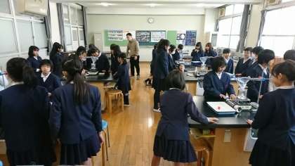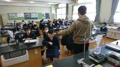 ビーカーの水を熱し、水が変化した気体をビニル袋に集めます。
