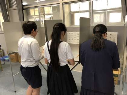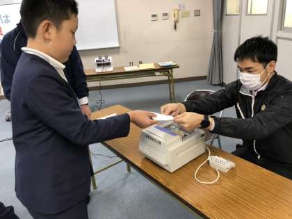 選挙の基本的な仕組みについて話を聞き、模擬選挙体験をしました。