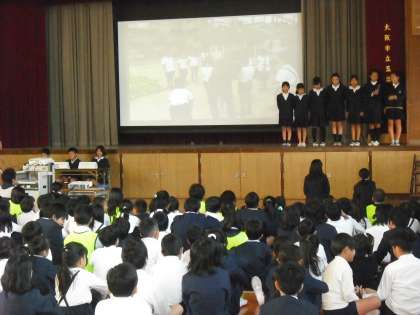 講堂で学年発表会をしました。緊張しながらも一人一人の役割を果たすことができました。テレビ番組ができるまでのことが全校生に伝わったことでしょう。テレビ番組を作るのも一人一人がカメラマンやアナウンサー、レポーターに分かれていることも詳しく話すことができました。