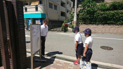 登校の時、正門で校長先生が、一人一人に聞きます。