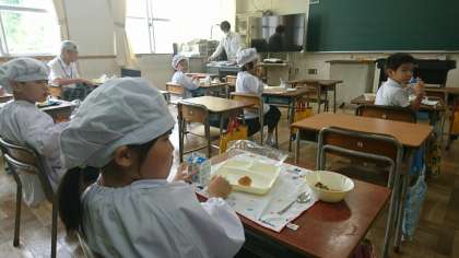 今日の給食は、コッペパンと牛乳、すき焼き煮です。