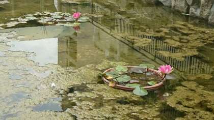 ビオトープの池に睡蓮(すいれん)の花が、咲きました。
