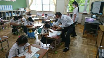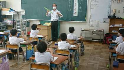 1年生がえんぴつの持ち方を学習をしました。『書く姿勢、持ち方を甘く見てはいけない』の著者 橋爪秀博先生に指導いただきました。
