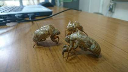 次に、クマゼミの初鳴について、羽化がらを見せてくれ、クマゼミの鳴き声を聞かせてくれました。