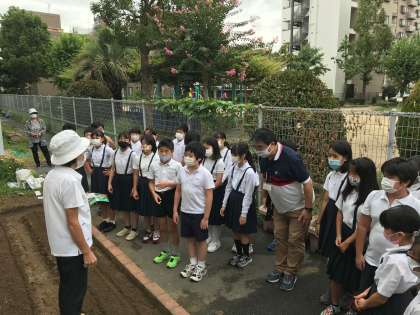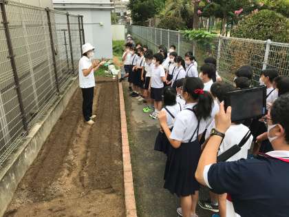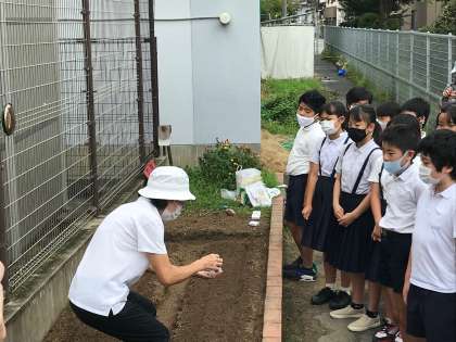 本日2時間目、5年生がなにわの伝統野菜「田辺大根」の種まきをしました。