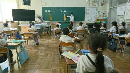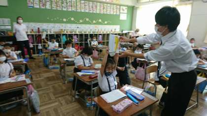 1年1組で教育実習生の研究授業が実施されました。