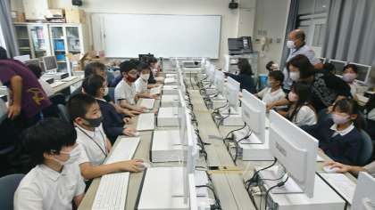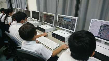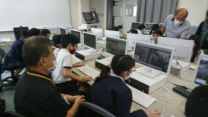 パソコン室で4年生が、総合的な学習の時間の学習をしています。