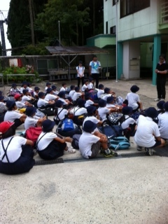 いよいよハチ高原での活動も終わりに近づき、大根引きをした後、昼食をいただき12時半、予定通り閉舎式を行いました。