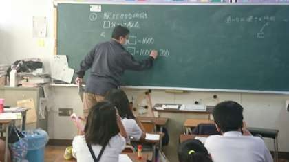 問題文「家から駅までの1600mの道のりを自転車で走ります。分速200mで走ると駅まで何分かかりますか」を解きます。