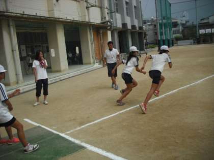 7月20日から始まった夏休み、早くも7月が終わり今日から8月です。毎日暑い日が続いていますが子どもたちは個々にがんばっています。今日は、玉出中学から体育科の鈴木慶浩先生に来ていただき、チャレンジクラブの活動を指導してもらいました。陸上と水泳、それぞれ今度の大会目指してみんながんばっています。