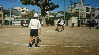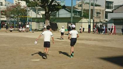 6年2組が体育科で、『ベースボール』に挑戦しています。