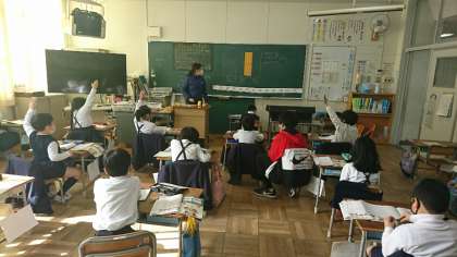 しっかりと手を挙げて、自分の考えを発表し、友だちと意見交流します。