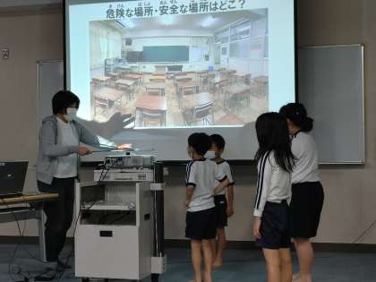 阪神淡路大震災、東日本大震災、大阪北部地震の被害を写真から知り、自分の命を守るためにどう判断して避難するかを考えます。