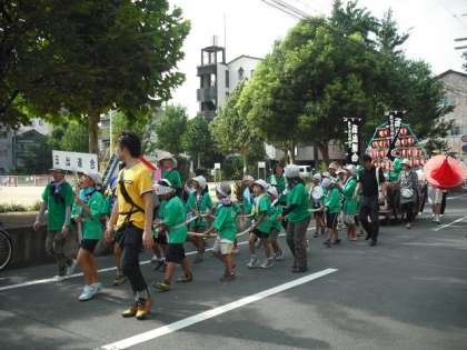 昨日、8月4日(日)西成区民まつりが開催されました。今年も恒例となりました「こどもみこし」に参加しました。希望者22名の子どもたちが玉出小学校に集まり、暑い中、集合場所の天下茶屋中学校まで歩き、そこから西成区民センターまでみこしの行進を行いました。玉出青少年指導委員会をはじめ玉小PTA、玉出こども会の協力でみんなでワッショイ!ワッショイ!楽しみました。