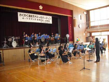 本日、8月6日(火)午後、講堂にてわくわく講座スペシャルバージョン− 演奏会・音楽会 −が開催されました。玉出小学校生涯学習ルームでコーラスをされている皆様の歌と玉出中学校吹奏楽部の皆さんによる演奏会に会場に参加いただいた地域、保護者のみなさんはとても感動していました。ありがとうございました。