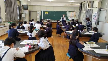 本日2時限目の5年1組の理科の授業は理科室で行いました。