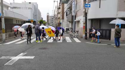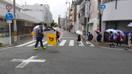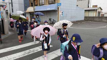 子どもたちの登校を見守ってくださっている皆様、雨の中をありがとうございます。おかげさまで子どもたちは安全に登校できています。