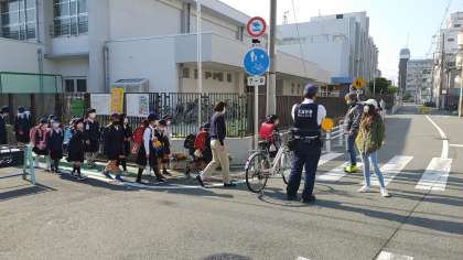 今日は警察官の方も一緒に子どもたちの登校を見守ってくださいました。パトロールカーも巡回してくださっています。ありがとうございます