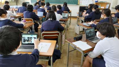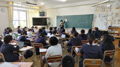 同じ1時限目、6年1組では、学習者用端末を使って「図工」の授業を行っています。