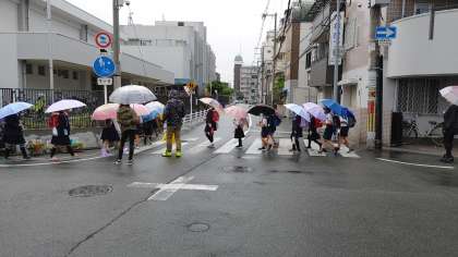 緊急事態宣言下3日目は、雨の中の登校となりました。