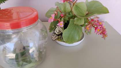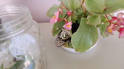 3年生の子どもたちが「今日もアゲハ蝶がかえったよ」と持ってきてくれました。