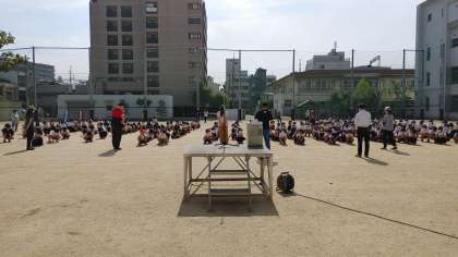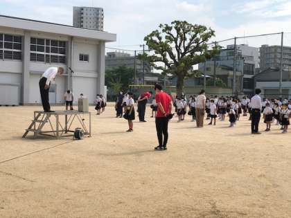 先生から指示される前に積極的に自分で考えて行動し、そしてみんなが人に親切にして、いじめのない安全な玉出小学校にしていきましょう。