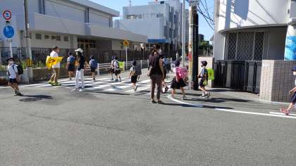 集団登校を見守ってくださる皆さまに感謝申しあげます。